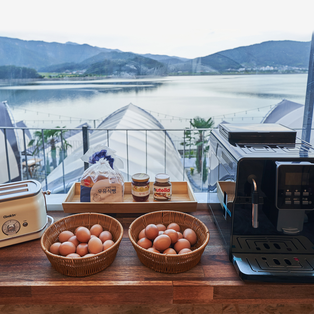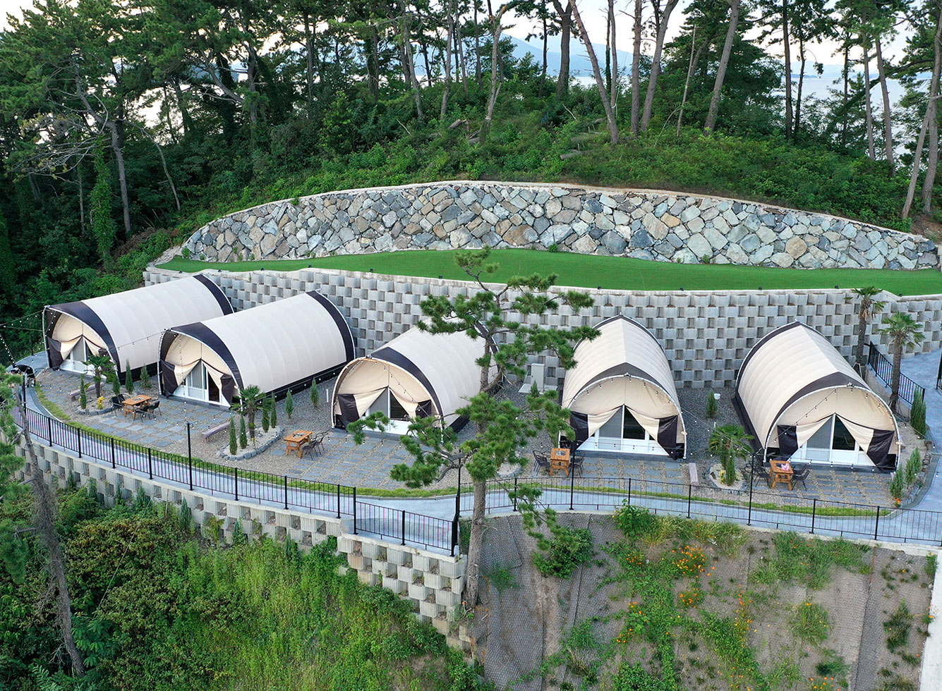 블루모어 글램핑 리조트의 숙소는 넓은 공간과 호텔급 침구류,